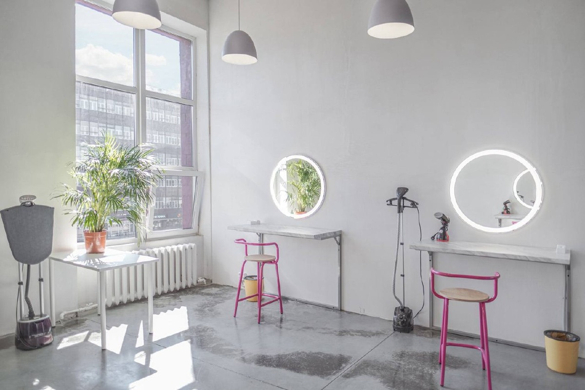 На каждом этаже есть просторная гримёрная комната с естественным светом и 4 гримёрными столами, удобно для команд, визажистов и стилистов. В стоимость любого места входит: • отпариватель • рейл для одежды По запросу также можем предоставить: • кольцевую лампу • колонку для комфортной атмосферы во время подготовки. А если нужна более приватная зона - у нас есть 2 персональные гримёрные комнаты на 3 этаже. В них: • большой гримерный стол • рейл для одежды • отпариватель • удобное кресло • колонка • вентиляция Подойдёт для индивидуальной подготовки, сборов перед съёмкой или работы с клиентом. Если нужна спокойная и удобная подготовка перед съёмкой, у нас для этого всё есть 💛