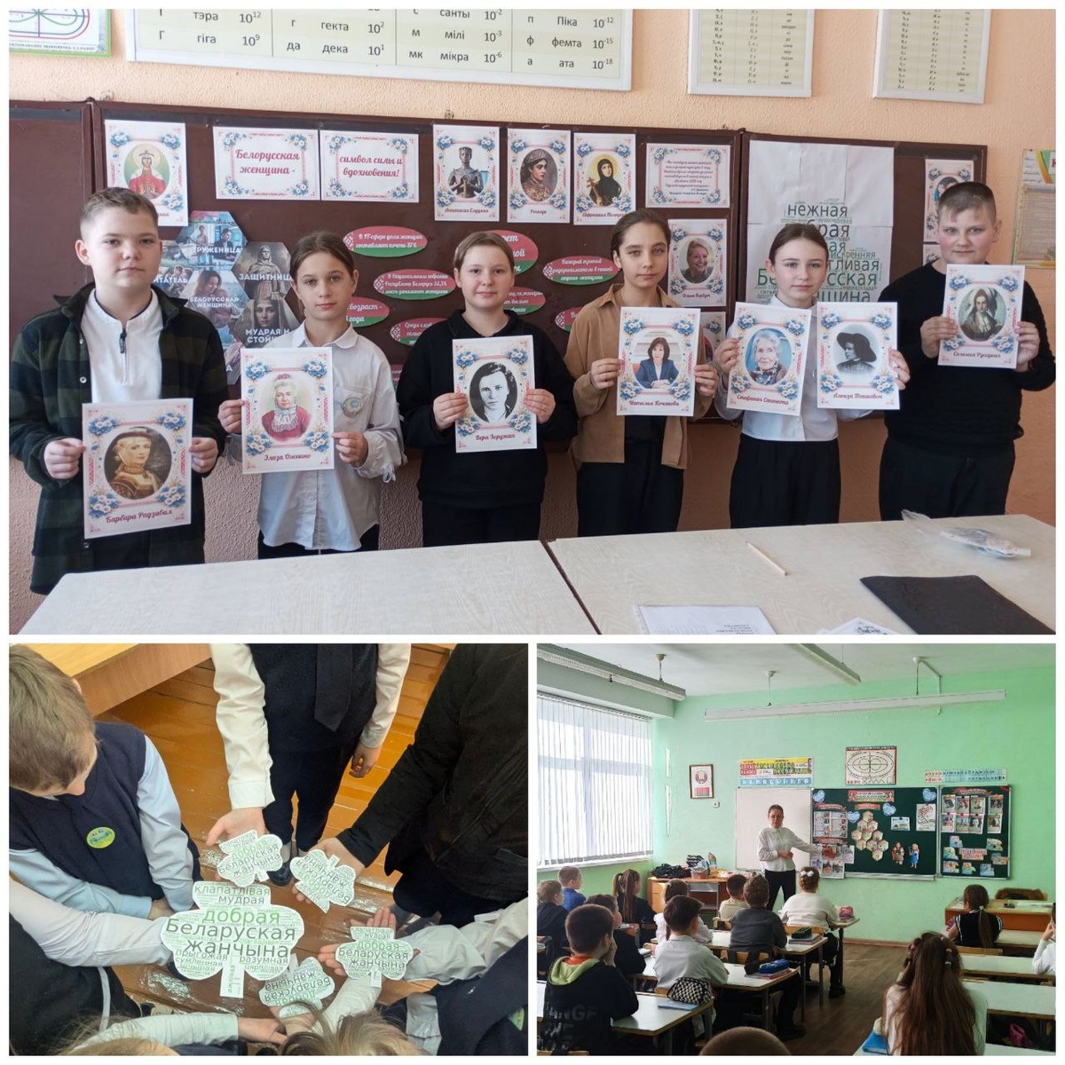 женщине 5 марта в учреждениях образования проведен единый урок "Белорусская женщина - символ силы и вдохновения", посвященный Году белорусской женщины. ✅ В ходе мероприятия учащиеся вели разговор о материнстве, воспитании детей, заботе о семье - как важнейшей роли женщины в обществе. Приглашенные на мероприятие мамы и бабушки учащихся, женщины-педагоги, представители общественных организаций рассказывали о роли женщины в жизни страны, о том, как они успешно сочетают заботу о семье, рождение и воспитание детей с работой и общественной деятельностью. ✅ В рамках единого урока были организованы: диалоговая площадка, "открытый микрофон", "интервью с гостем", просмотр видеоролика "Год женщины в Беларуси. Их сила. Их доброта. Их Беларусь. Белоруски пишут историю страны". 🟢 В конце урока учащиеся подписали "Открытку- благодарность" женщине (маме, бабушке, учительнице).
