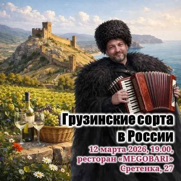 Друзья, мы знаем и помним, что когда-то, во времена СССР республики жили одной семьей, передавая друг другу лучший опыт, делясь своими богатствами. Одно из таких богатств - древнейшие сорта винограда, рожденные на грузинской земле и успешно получившие второе рождение в других республиках. В новой истории российские виноделы не отказались от этого наследия, сохранив его и приумножив. Как сейчас работают с грузинскими сортами? Какие стили используют? Давайте попробуем и оценим разные варианты - от легких, фруктовых белых, до выдержанных в квеври оранжей и мощного и бархатного саперави. Кстати, пробовать все это мы будем под аутентичную грузинскую закуску от ресторана “Мегобари”. В программе: ✔️Дегустация 9 вин, а также Велкам дринк ✔️Полезные знания о грузинских сортах и российских винодельнях, ведущий дегустации - Юрий Юдич - винный эксперт, судья международных и российских конкурсов вин, руководитель комитета ФРИО по российскому виноделию, блогер и основатель Клуба Дегустариум ✔️