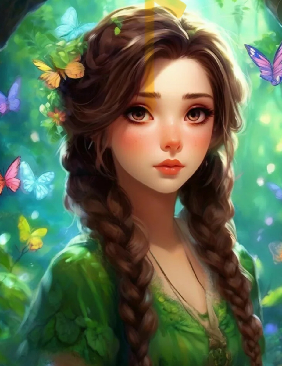 Что происходит?! — подумала девочка. — Надо как - то от сюда выбраться! Ладно! Пойду направо ,решила она, и смело шагнула в сторону леса. Тропинка вела ее , а веселые бабочки кружились вокруг каштановых локонов девочки , словно сопровождающие за компанию. С ними и в правду было веселее шагать.