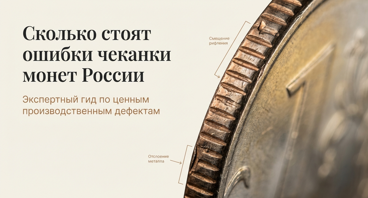 Ошибки чеканки — это производственные дефекты, возникающие в процессе изготовления монет. В отличие от разновидностей штемпеля (которые являются запланированными отличиями в оформлении), ошибки — это именно технологические сбои. В современной России такие экземпляры особенно интересны коллекционерам, поскольку тиражи регулярных монет огромны, а вот настоящий производственный брак встречается сравнительно редко. Монеты современной России выпускаются с 1997 года и чеканятся на двух предприятиях по заказу Банк России — Московский монетный двор (ММД) и Санкт-Петербургский монетный двор (СПМД). Несмотря на высокий уровень контроля качества, полностью исключить появление брака невозможно. Процесс чеканки включает несколько этапов: 1. Подготовка металлической ленты 2. Вырубка заготовок 3. Формирование гурта 4. Нанесение изображения штемпелями под большим давлением 5. Контроль качества Ошибки могут возникнуть на любом этапе — от дефектов металла до неправильной установки штемпелей. Ошибки заго