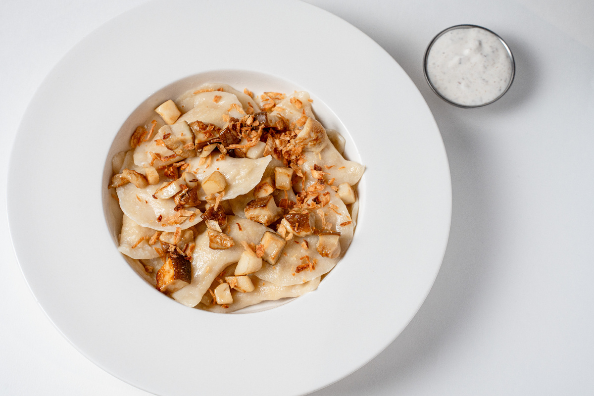 Вареники хороши в любое время, но в период Великого поста они оказываются особенно кстати, ведь это одно из тех блюд, в котором можно соблюсти все ограничения и при этом сохранить его изначальный вкус. Сегодня мы решили вспомнить самый распространенный вариант вареников с картошкой, но в постном варианте, который готовят в московском ресторане «Зарядье». Шеф повар Сергей Лазарев включил их в специальное меню, сделав акцент не на ограничениях, а на насыщенных вкусах. Среди других позиций – картофельные крокеты со шпинатом и шампиньонами, фатуш с овощами, кешью, запеченной тортильей и заправкой с наршарабом, суп из белых грибов с перловкой, опятами и пастернаком и сыр тофу в кокосовом соусе карри с томатами черри и рисом басмати. Вареники с картошкой шеф-повар Лазарев дополняет жареными белыми грибами, луком фри и трюфельным майонезом. Вот как он советует готовить их дома. Что нужно для приготовления постных вареников с картофелем, белыми грибами и трюфельным майонезом Ингредиенты для те