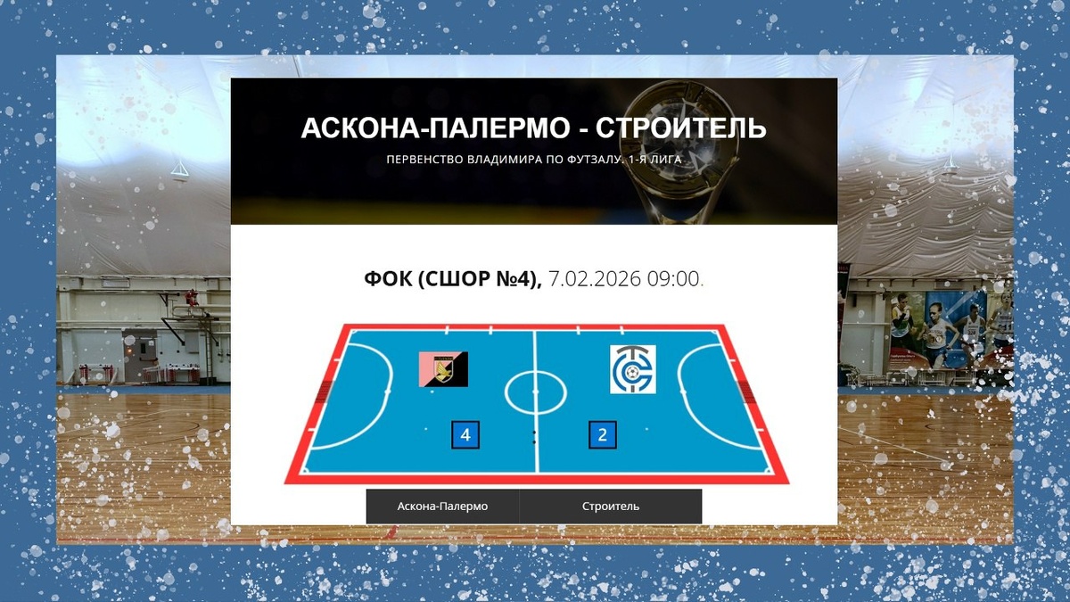 Первенство Владимира по футзалу. 1-я лига. 07.02.2026 г. Аскона-Палермо - Строитель 4:2 (2:1) Обзор