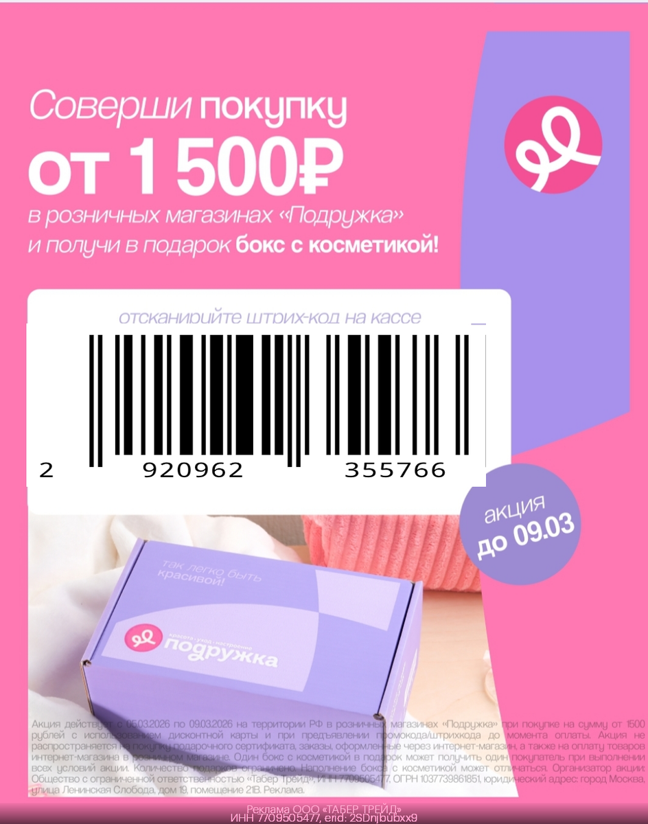 ▪️Покажи штрихкод ДО момента оплаты и получи бокс с косметикой в подарок😍