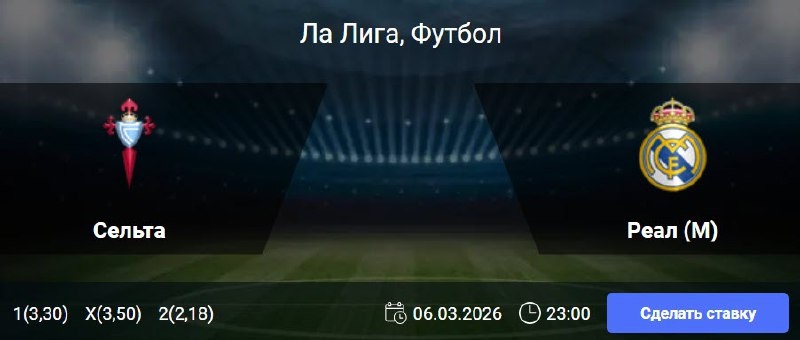 Сельта - Реал Мадрид: Ла Лига 27-й тур чемпионата Испании (06/03/26/23:00