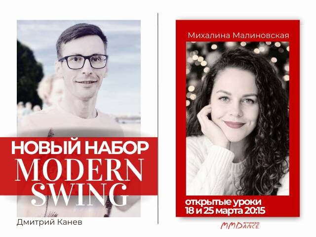 ! По modern swing? Да. И вести новый набор будет новый яркий тренерский тандем: Дмитрий Канев и Михалина Малиновская.😃 Влюбить в modern swing (он же вест кост свинг) и научить вас танцевать за 3 месяца так, чтобы летом вы с уверенностью и легкостью танцевали на опен-эйрах - это про них. 📌 Занятия будут проходить в удобном режиме - 1 раз в неделю по 2 часа - ср 20:15-22:15. Курс длится 3 месяца. 🔥Открытые уроки: 18 и 25 марта. Первое посещение - бесплатно, а эмоций и впечатлений - вагон. Скорее записывайся 👉 через анкету https://vk.com/app5619682_-57019109#699970 👉 или пиши нам в директ
