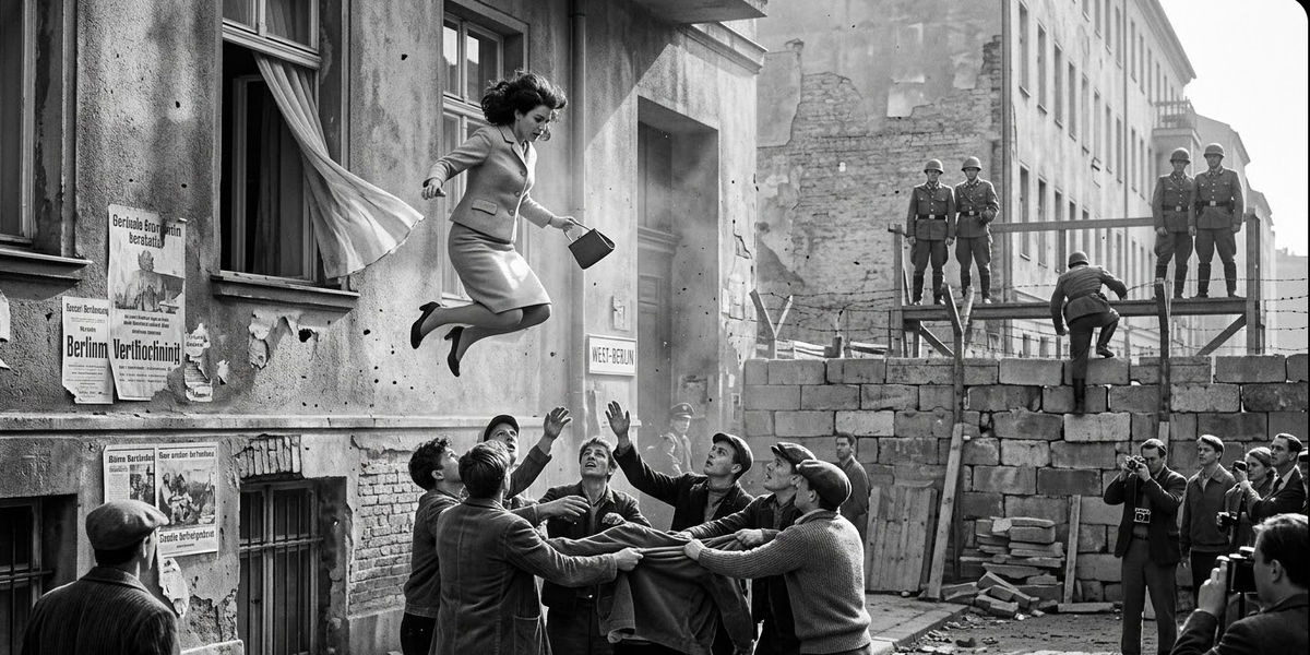 В этот момент время будто остановилось. Я видел капли пота на лбу восточного охранника, который не успел её схватить. Видел изумление в глазах офицера ГДР, стоявшего внизу. И видел лицо Нини — в нем не было страха, только безумная, отчаянная решимость.