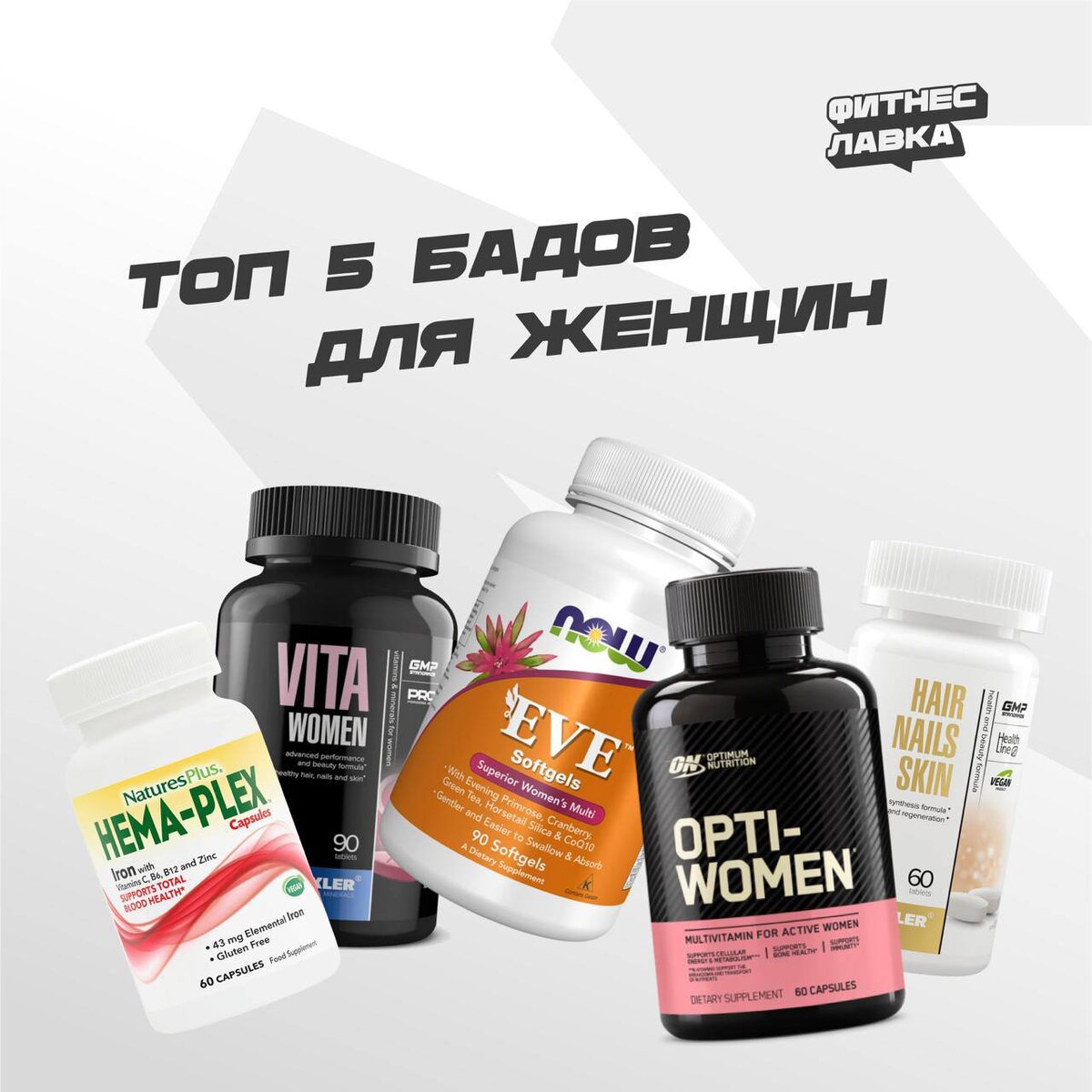 ? Быстрая жизнь, стресс и неправильное питание плохо влияют на здоровье женщин. Мы расскажем о популярных добавках, которые помогают оставаться бодрыми, красивыми и в гармонии👇 1️⃣🙂NOW EVE Поддержка энергии, иммунитета и гормонального баланса. Подходит для ежедневного приема ЦЕНА: 3330 руб / 90 таб Заказать на сайте 2️⃣🙂MAXLER VITA WOMEN PRO Витамины + минералы с акцентом на активный образ жизни и восстановление ЦЕНА: 2050 руб / 90 таб Заказать на сайте 3️⃣🙂OPTIMUM NUTRITION OPTI-WOMEN Мультивитаминный комплекс с концентрацией активных веществ ЦЕНА: 2590/4280 руб 60/ 120 таб Заказать на сайте 4️⃣🙂MAXLER HAIR NAILS SKIN Поддержка волос, кожи и ногтей ЦЕНА: 936 руб / 60 таб Заказать на сайте 5️⃣🙂NATURESPLUS HEMA-PLEX Комплекс железа с витаминами группы B для коррекции дефицита ЦЕНА: 2690 руб / 60 таб Заказать на сайте Выбор зависит от ваших целей: энергия, красота или поддержка уровня железа 💊 Доставка по всей России НЕ ЯВЛЯЕТСЯ ЛЕКАРСТВЕННЫМ СРЕДСТВОМ Telegram😎@fitness