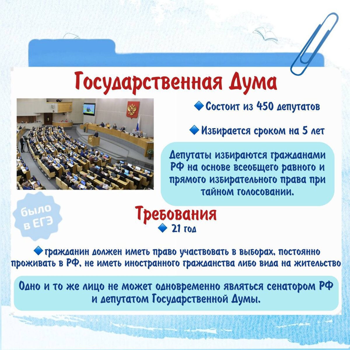 👇 ✅Государственная Дума собирается на первое заседание на 30 день после избрания. ✅С момента начала работы Государственной Думы нового созыва полномочия Государственной Думы прежнего созыва прекращаются. ‼️ Первое заседание Государственной Думы открывает старейший по возрасту депутат. ✅ Депутаты Государственной Думы обладают неприкосновенностью в течение всего срока их полномочий. ✅Депутат Государственной Думы не может быть депутатом иных представительных органов государственной власти и органов местного самоуправления. ✅Депутаты Государственной Думы не могут находиться на государственной службе, заниматься другой оплачиваемой деятельностью, кроме преподавательской, научной и иной творческой деятельности. 📌Завтра разберём полномочия Государственной Думы! Не пропустите! Так как они нужны для решения 13 задания! Мой резервный канал в мессенджере MAX #полезноеобщага