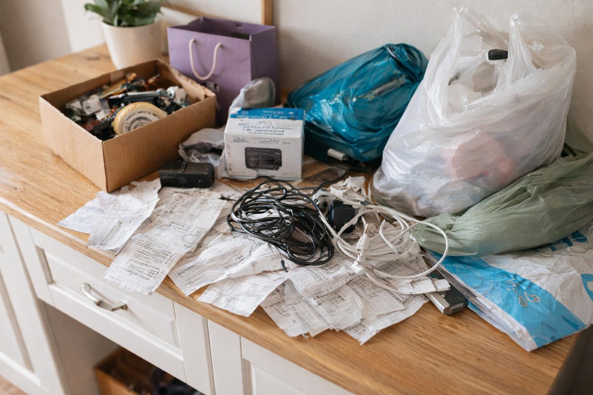 Иногда усталость дома появляется не из-за больших проблем, а из-за мелких деталей, которые мы почти не замечаем. Вроде бы всё в порядке: вещи на своих местах, дом привычный, ничего катастрофического не происходит. Но пространство всё равно кажется тяжёлым, а настроение падает быстрее обычного. Часто причина кроется в так называемых вещах-вампирах — предметах, которые незаметно забирают внимание и энергию. Первая категория таких «вампиров» — это мелкие предметы, которые постепенно накапливаются. Старые чеки, случайные коробки, провода, пакеты, которые «на всякий случай» лежат годами. По отдельности они кажутся безобидными, но вместе создают визуальный шум. Мозг постоянно сканирует пространство, и каждая такая мелочь становится микросигналом: «это нужно разобрать». Даже если вы не думаете об этом сознательно, внимание всё равно расходуется. Есть предметы, которые словно кочуют по дому. Сегодня они на столе, завтра на стуле, потом на подоконнике. У них нет постоянного места, поэтому они в