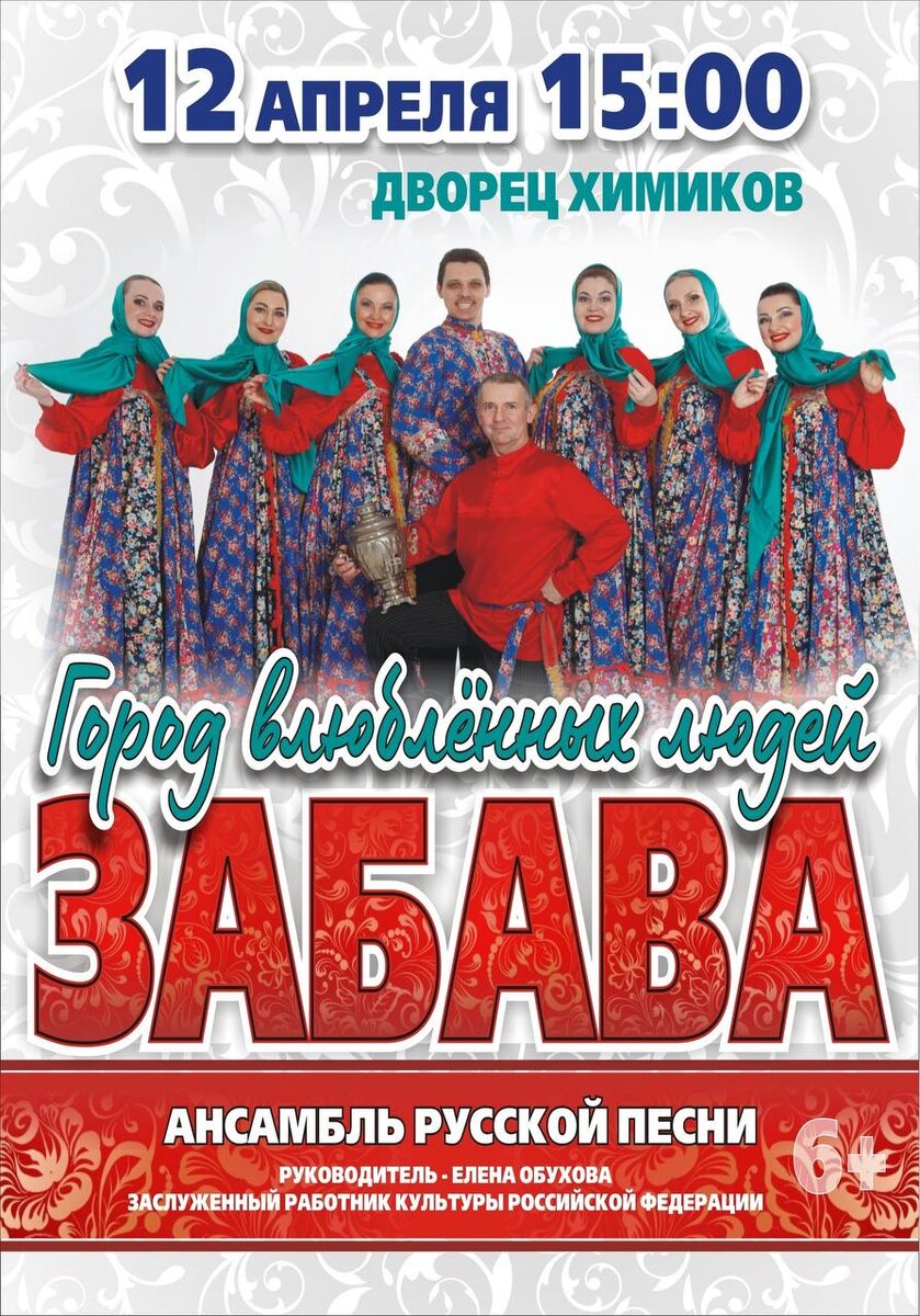 🌸Концертная программа Ансамбля русской песни «Забава» «Город влюблённых людей» 🌺Коллектив известен в городе и области своими яркими выступлениями. Народные и авторские песни представлены ансамблем в современной обработке. Каждый номер дарит море эмоций и позволяет зрителям всех возрастов наслаждаться происходящим. 🌺В концерте прозвучат новые и любимые песни, посвященные самым трогательным темам: Родины, любви, мира и добра. Созданные в разные времена, они обретают новую жизнь благодаря умелой аранжировке и профессиональному исполнению артистов. Яркие костюмы и колоритная хореография добавляют выразительность каждому выступлению, погружая зрителей в атмосферу русской культуры. Билеты📩