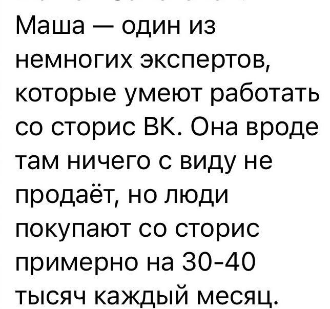 Или как я даже спустя 2 года после ухода из этой гребучей Инсты обесцениваю свои результаты. Ведь я же всё ещё не зарабатываю миллион в месяц. Вон тут люди хвалятся, что за месяц со сториз продаж на 30-40 тысяч. И это крутое достижение. А я почему-то всегда про свои результаты думаю - пфф, ну подумаешь. Разве ж это достижение… Хотя я, блин, умею зарабатывать с одного поста 40-90 тысяч рублей. С ОДНОГО ПОСТА! Из последних примеров - вот с этого поста заработала - 90000 рублей. А вот с этого - 47000 Плюс кейсы мои работают так, что на дистанции один опубликованный пост с кейсом приносит от 100 тысяч до полумиллиона. И заметьте все это без запусков, без утомительных прогревов к личности или продукту, без сбора кучи людей на бесплатные мероприятия, без дожимов и шквала напоминалок в боте - купи, купи, купи. Но я для себя все еще недостаточна хороша. Мда… Ведь я помню, как в Инсте принято вы@бываться своими миллионами в легкости. А я тут видите ли работаю, иногда даже по 6 часов