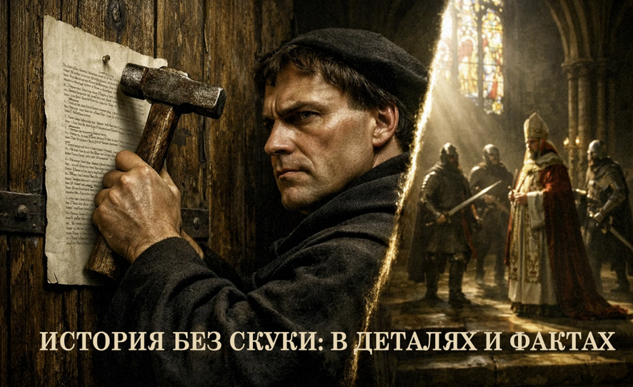 31 октября 1517 года один крайне раздражённый монах взял молоток, четыре гвоздя и отправился к церкви в немецком городе Виттенберг. Там он достал лист бумаги с девяноста пятью пунктами, прибил его к двери, развернулся и ушёл обратно в свой августинский монастырь.