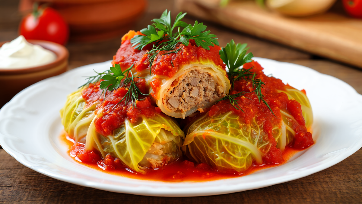 Голубцы — это классическое блюдо славянской кухни, сочетающее нежный рис с мясной начинкой, аккуратно завернутые в листья капусты и тушёные в томатном соусе. Это не только сытное и питательное блюдо, но и настоящее произведение кулинарного искусства благодаря красивой форме и гармонии вкусов. В этом рецепте вы узнаете, как приготовить идеальные голубцы с сочной начинкой, мягкими капустными листьями и ароматным томатным соусом, а также о частых ошибках, профессиональных советах и сервировке для праздничного стола. Для голубцов: Для соуса: Для подачи: Совет профессионала: