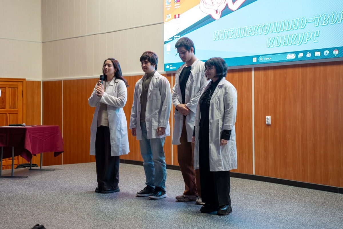 В Северо-Кавказской государственной академии состоялась интеллектуально-творческая игра «23+8 или ФЕВРОМАРТ», приуроченная ко Дню защитника Отечества и Международному женскому дню. Участниками мероприятия стали студенты первых курсов всех институтов академии. 🤩Конкурсная программа включала несколько этапов. В конкурсе «Визитная карточка» команды представили свои институты и познакомили зрителей с участниками. Затем студенты приняли участие в интеллектуальном квизе, где отвечали на вопросы из различных областей знаний. Отдельные задания были подготовлены для юношей и девушек. Представители сильной половины соревновались в меткости — участникам необходимо было попасть дротиками в воздушные шарики, а также проявили ловкость и скорость, собирая пирамиду из бумажных стаканчиков без помощи рук с использованием воздушного шарика. Для прекрасной половины прошли конкурсы «Летящая походка», где участницы демонстрировали дефиле с книгой на голове, а также творческое задание по лепке из солёног