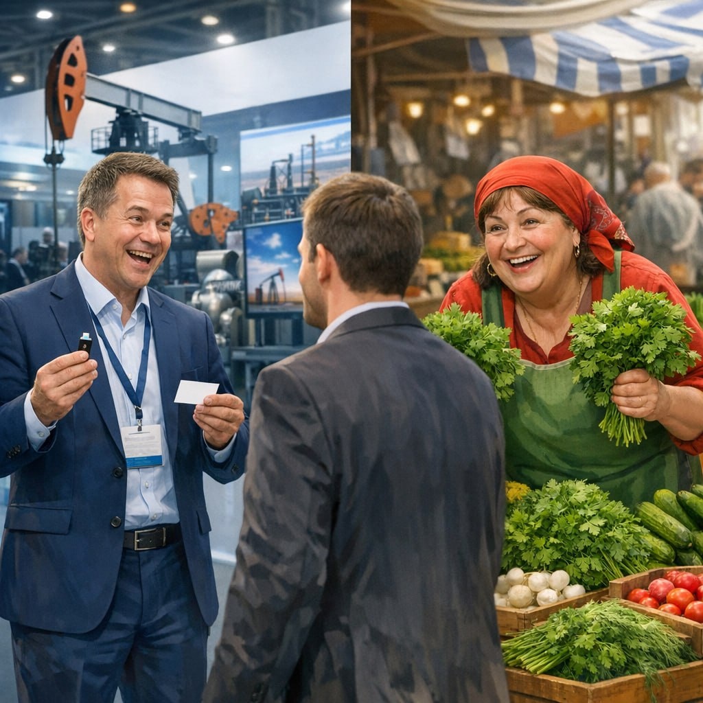 В понедельник был на выставке «Нефтегаз». И как только я вошел в зону стендов, меня с распростертыми объятиями встречает коммерческий директор некой компании N. C ходу начинает рассказывать историю про агрегаты, надежность, контракты, вручает флешку с презентацией и визитку. Я был польщен. Видимо, меня приняли за сотрудника нефтяной корпорации. Но за весь монолог — ни одного вопроса. Кто я? Какую компанию представляю? Чтобы понять, насколько я близок к их профилю целевого клиента и ЛПРа. Ни-че-го! Просто вслепую потратили время топа и маркетинговый бюджет. И если так работает комдир — что говорить об обычных менеджерах? Дальше по выставке — тот же сценарий повторялся несколько раз. Знаете что мне это напомнило? Рынок. На Даниловском этот подход работает: укроп может купить любой — ребенок, пенсионер, бизнесмен. Но сложные B2B-продажи — не торговля петрушкой. Здесь внешность обманчива. И я вот что важно: ошибка на стенде — не случайность, это фрактал. Когда одна и та же структура воспро