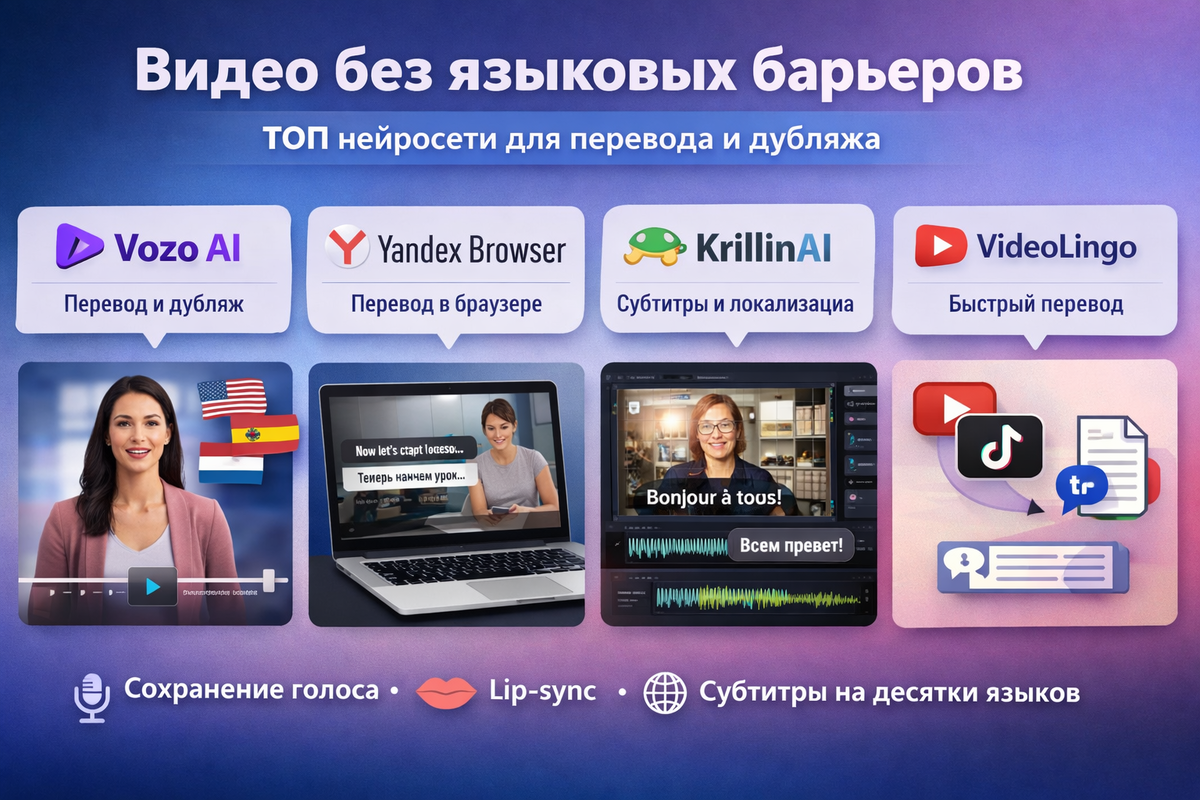 • автоматически создавать субтитры Ниже — четыре сервиса, которые помогут быстро локализовать видео. 👉 https://www.vozo.ai/ Один из новых сервисов для автоматического перевода и дубляжа видео. Основные возможности: • перевод видео на десятки языков