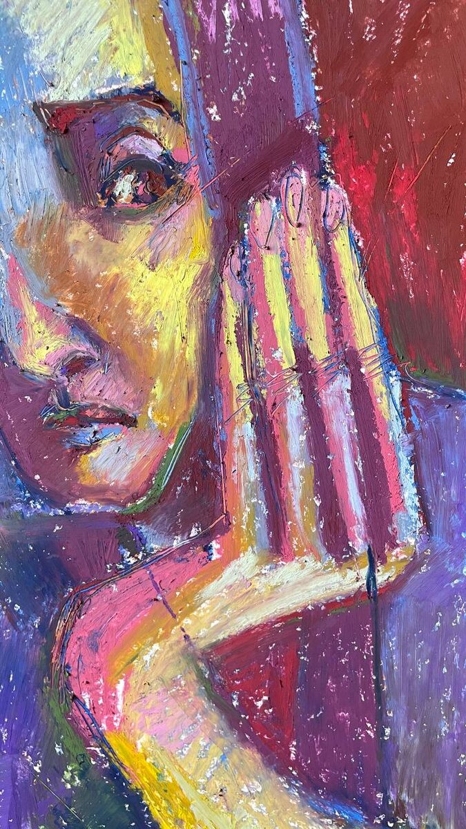 Хотя если с такими примерами сравнивать — значит сделать популярным на непродолжительный срок. Впрочем, я о другом. Есть ощущение, что рисованию нужно меняться. Выходить из мастерских что ли? Интернет пытается помочь видео-форматами, но глобально ничего ж не изменилось — нарисовал, поотсвечивал, повыставлялся, продал. Возвращаясь к стенд-апу (не к матча-латте же) хочется обратить внимание на уникальный факт встречи автора со зрителем — концерт. Почему бы художникам не стать новыми стенд-аперами. Осталось придумать форму, обёртку и в тур. Интересно, кто будет первым и найдется ли вообще такой дурак? *** «Цветной задумчивый» 30х42, бумага, масляная пастель