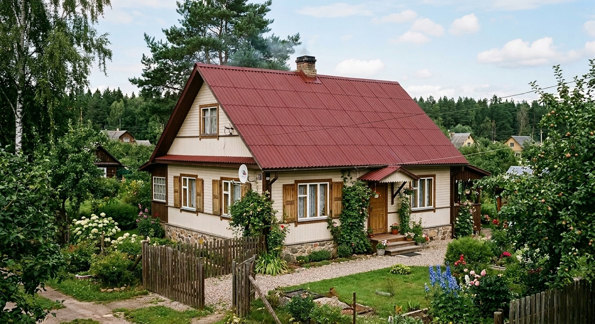 - Металлочерепица и профлист: Лидеры по скорости монтажа и доступности. Их главный технологический изъян — полное отсутствие акустического комфорта и значительное термическое расширение. Любые осадки превращают кровлю в резонирующую мембрану, создавая эффект «железного барабана» внутри жилых помещений.