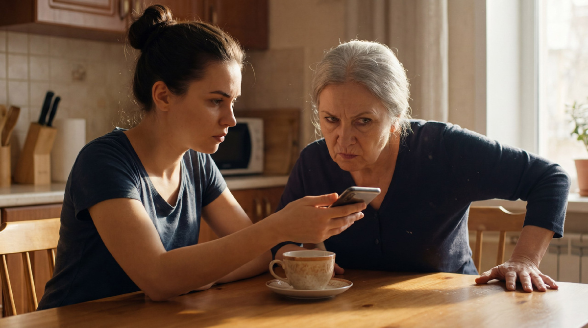 Она вышла из ванной — пальцы ещё влажные после умывания, — и увидела свекровь за кухонным столом. Галина Ивановна держала её телефон в руках и смотрела на экран с таким выражением, будто нашла что-то давно разыскиваемое.