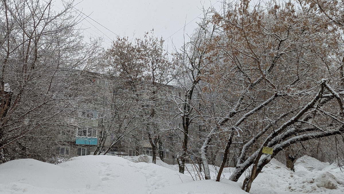 Горы снега заметно осели. Уже который день днём у нас держится плюсовая температура. На дороге лужи и проталины.