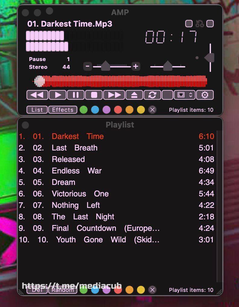 AMPPlayer- лучшая альтернатива winamp, для macos Действительно лучшая замена winamp, правда для mac. Сам им пользуюсь в маке, в Винде - aimp. Ну вот не любо мне музыкальные онлайн сервисы! Самое интересное, что плеер бесплатный для скачки, но там будет появляться менюшка для покупки ключа! И вот здесь я вас обрадую, что ключ вам конечно же дам! Поэтому и халява)). Покупал его в то время! Теперь хочу вас побаловать. Он не одноразовый, раза три ставил проигрыватель и ключ всегда под рукой был применён! Поэтому эксплуатируйте! Тут скачивайте: https://ampplayer.ru/download/ Ключ: 303631333132333331323637313130313331313930313337313333 🌟@mediacub🌟