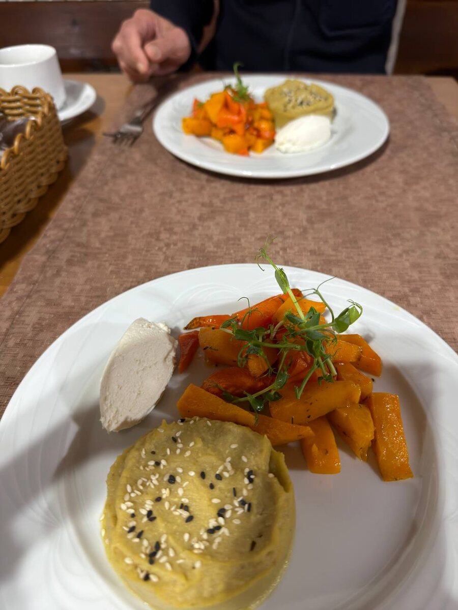 : Пюре картофель + горох Запеченная тыква Творог