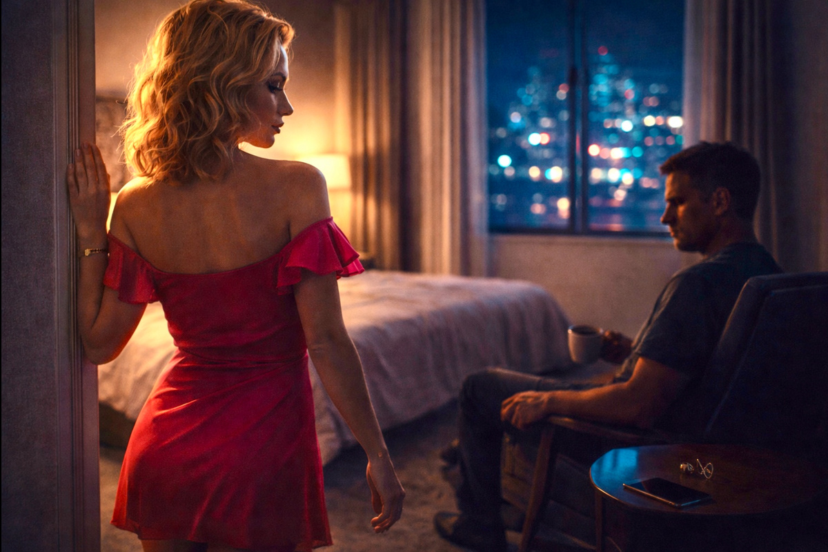 Я посмотрел на неё. Красная, шальная, красивая. Волосы растрёпаны, платье перекошено, губы смазаны. Пахнет чужим парфюмом и вином.