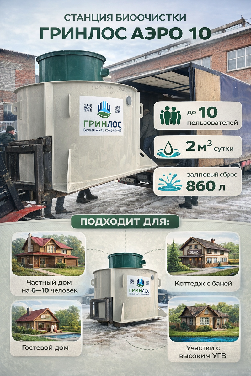 Итак, правильный расчет станции очистки / септика: если выбрать слишком маленький объем, система не справится с нагрузкой, если сильно завысить – переплата за оборудование. На первый взгляд, слишком сложно, но вы вполне можете сами прикинуть, какого объема септик вам подойдёт. Разберем простую формулу, которой пользуются инженеры. Основой расчета является среднесуточное потребление воды одним человеком. По строительным нормам для частного дома принимают: 180–200 литров воды на человека в сутки. Но полезно понимать, из чего складывается этот расход. Примерные значения: Если сложить обычное ежедневное использование, как раз получается около 200 литров на человека. Используется простая инженерная формула: Количество жителей × 200 л = суточный объем стоков Например: Дом, где постоянно живут 5 человек. 5 × 200 = 1000 литров в сутки (1 м³) Но это только базовое значение. В реальной жизни вода часто используется одновременно. Например вечером: Это создает залповый сброс – кратковременный боль