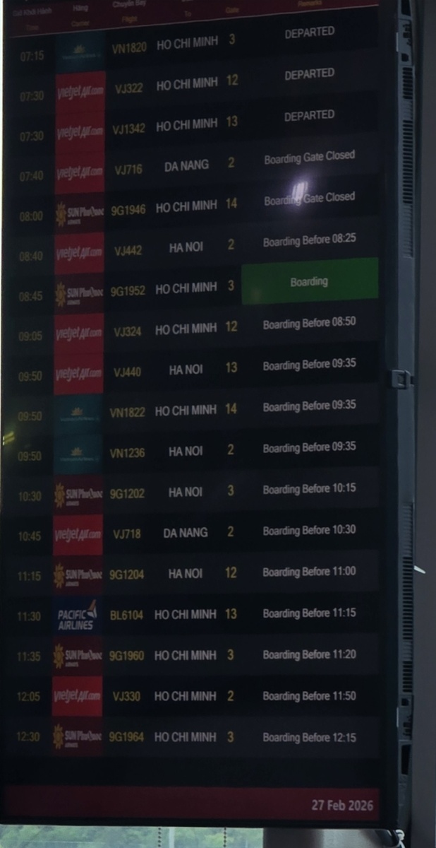 Как видно на табло, основная часть вылетов с Фукуока в Ханой или Хошимин (бывший Сайгон), есть один рейс в Дананг, и на этом, собственно, весь доместик заканчивается.