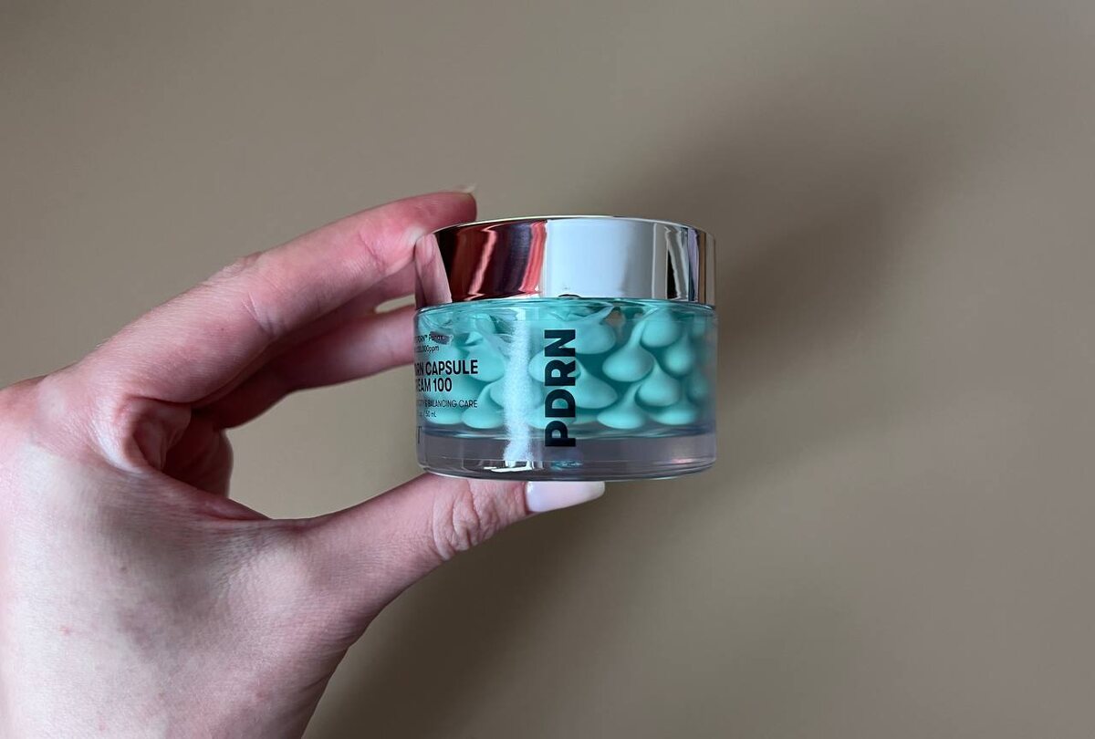 Этой зимой со мной случился самый необычный крем в моей жизни) PDRN Capsule Cream 100. Честно говоря, когда в начале зимы получила посылку и первый раз увидела баночку, решила, что мне его даже трогать жалко, такой он симпатичный и необычный. Выглядит как гель, в котором находятся капельки крема. Для каждого типа кожи производитель рекомендует определенную пропорцию количества капсул и геля при каждом нанесении. Мне подошел вариант 1 к 1. В комплекте к крему идет лопаточка, которая закрепляется в банке с кремом. Ей удобно подцеплять капсулы с кремом. Я беру 1 капсулу и примерно столько же геля, наношу на лицо. Сначала получается нежный зеленоватый крем-гель, который при распределении становится прозрачным и спустя 5 минут впитывается. Такого количества как на фото хватает на все лицо (а оно у меня не маленькое) и шею. Всю зиму я использовала этот крем в комбинации с сывороткой и стиком-бальзамом из этой же линейки. Кожа выглядела отлично, увлажненная, напитанная и любые раздражения быс