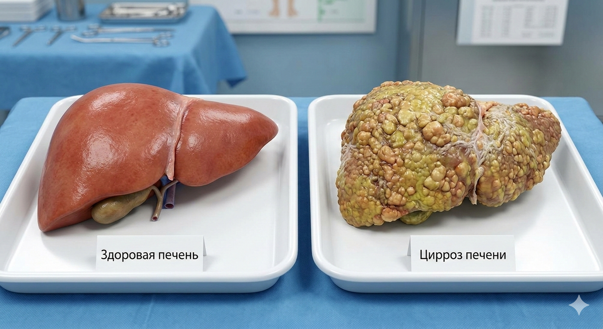 Цирроз при регулярном употреблении — это не вопрос десятилетий, это вопрос лет. В среднем, 10-15 лет ежедневного употребления достаточно, чтобы печень превратилась в рубцовый орган, неспособный выполнять свои функции. И главная коварность в том, что первые 5-7 лет человек чувствует себя прекрасно и не верит врачам.