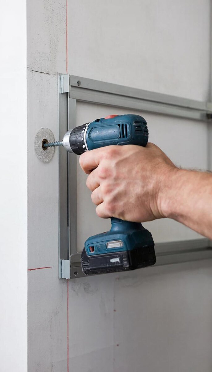Иногда за гипсокартоном спрятана нормальная бетонная или кирпичная стена. Тогда всё просто: сверлишь гипсокартон, потом бетон, вставляешь длинный дюбель (минимум 60–80 мм) и крепишь шкаф сквозь обшивку. Гипсокартон в этом случае не несёт нагрузки, он просто декорация.
