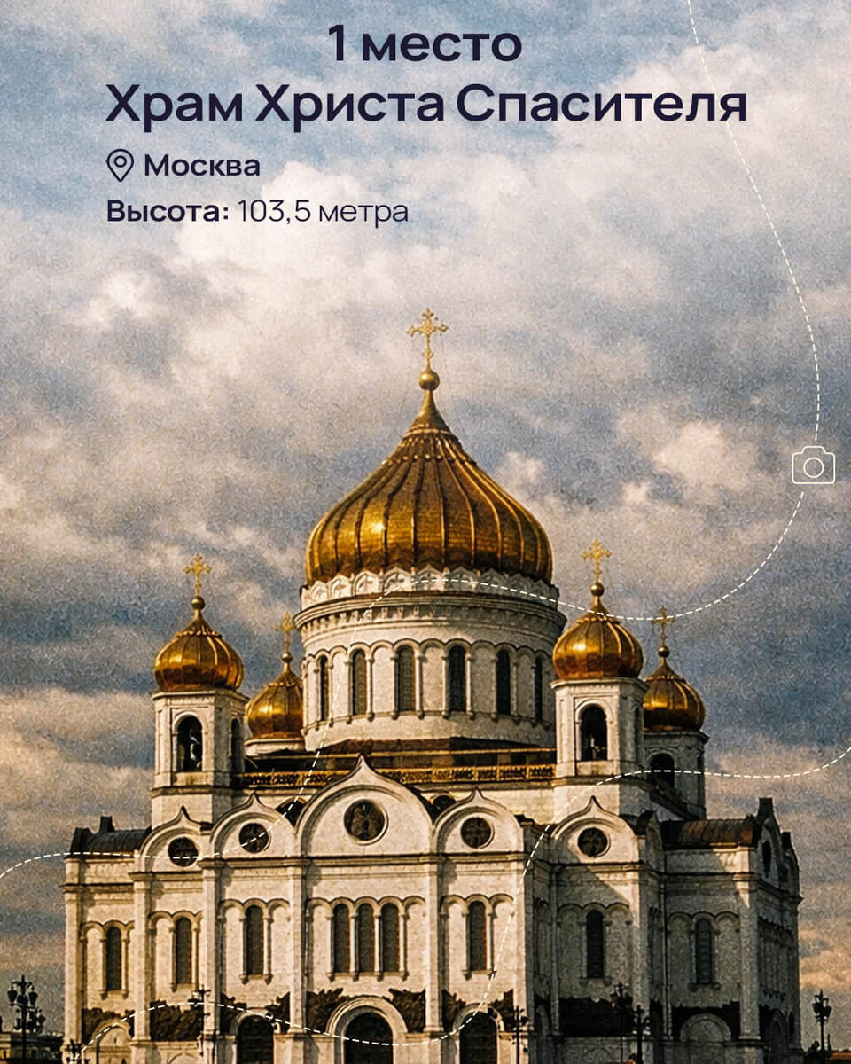 Рассказываем о трех самых величественных храмах России, чья высота достигает невероятных высот. Эти цифры вас точно удивят! Главный православный собор России и самый высокий в стране. Его высота – 103, 5 метров. Это как 33-этажный дом! Храм вмещает до 10 тысяч человек. 😮 Его построили менее, чем за 6 лет. Монументальный храм, разрушенный советскими властями в 1931 году, начали восстанавливать по новому проекту в 1994 году, и к концу 1999 года он был вновь открыт. Второй по высоте храм России и одно из самых больших купольных зданий в мире. Его высота – 101, 5 метров. Строительство храма и все внутренние работы длились целых 40 лет – с 1818 по 1858 год. На интерьеры храма было израсходовано 300 килограммов золота, и еще 200 – на позолоту купола!🤩 Главный храм города, его высшая точка – 97 метров. Колокольню собора видно практически из любой точки города. Строительство собора осуществлялось с 1998 по 2009 годы. Здесь хранятся мощи особо чтимых в России святых Митрофана Воронежского и Т
