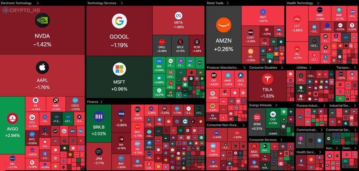 📉 Фондовый рынок США сегодня потерял почти $1,000,000,000,000 рыночной капитализации.