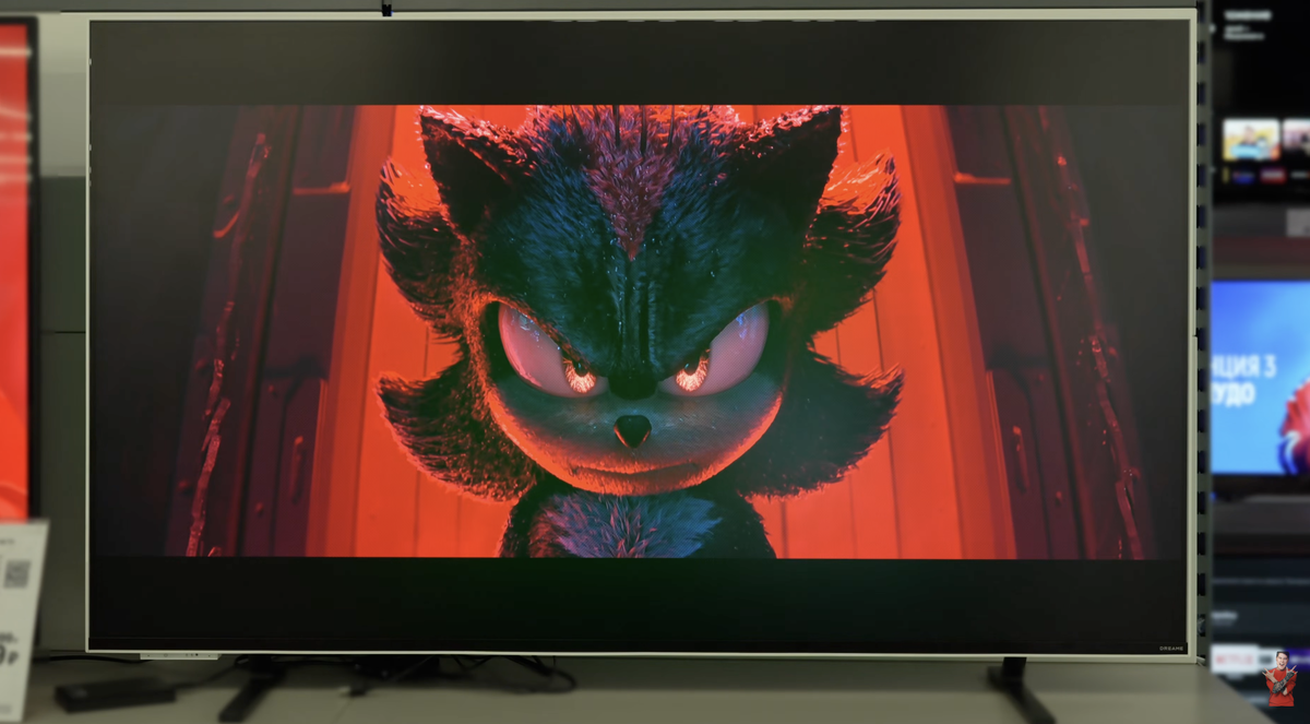 И отдельно скажу про SDR. Это обычный контент: стриминг, эфир, YouTube. Квантовые точки дают насыщенные цвета, лица людей выглядят нормально, естественно. Из коробки картинка неплохая. Но Delta E все равно не идеальная, есть погрешности. Я этот телевизор не калибровал и настройки не подбирал — он просто не вызвал желания этим заниматься.