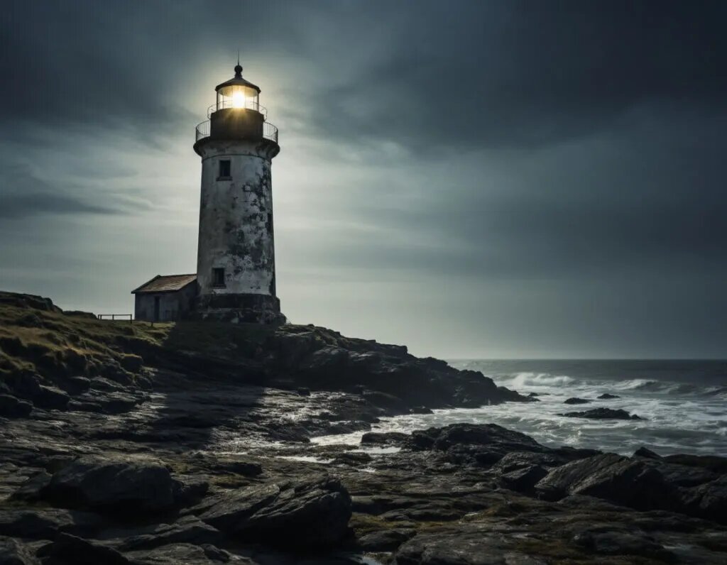 Ужасы про историю Смотрителей маяка В 1923 году на побережье Нортумбрии, у скалистого мыса Блэк‑Рок, бесследно исчезло трое смотрителей маяка. Их смена должна была закончиться через неделю, но когда спасательная лодка добралась до острова, на маяке не осталось ни людей, ни следов борьбы — только перевёрнутый стол в кают‑компании и одна‑единственная фраза, нацарапанная на стене: «Оно пришло из тумана». Эта история легла в основу моего рассказа. Всё остальное — плод воображения, но от этого не менее пугающего. Октябрь 1922 года. Томас Грейвс, опытный моряк с измождённым лицом и глазами, полными невысказанной боли, ступил на каменистый берег острова Блэк‑Рок. Он прибыл сюда, чтобы занять место старшего смотрителя маяка после внезапной смерти предыдущего работника. С ним были двое помощников: молодой и жизнерадостный Джек Миллер и молчаливый, суровый Эрик Свенсон. Маяк возвышался над скалой, словно древний страж, его чёрные стены казались выточенными из самой скалы. Воздух здесь был густым