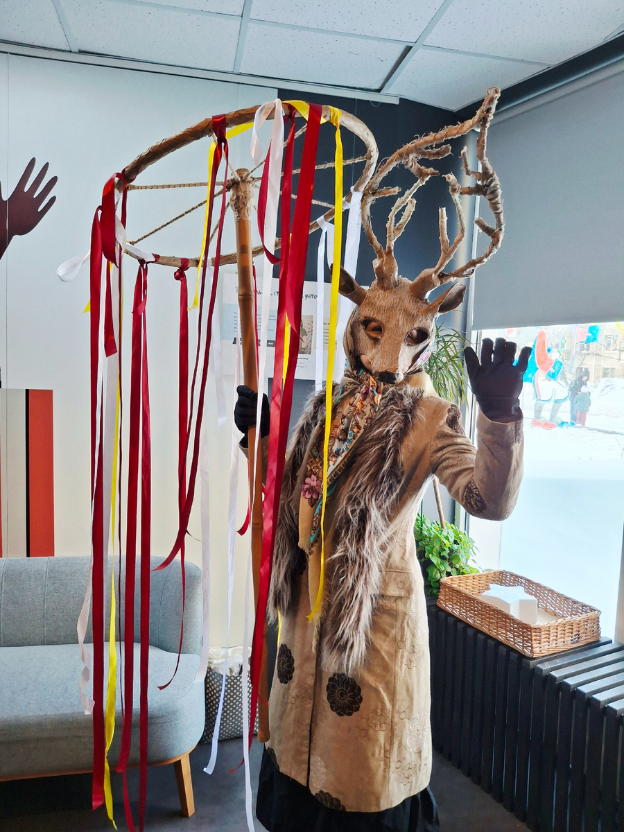 Праздник начался в фойе. К нам вышли ряженые и рассказали масленичные традиции.