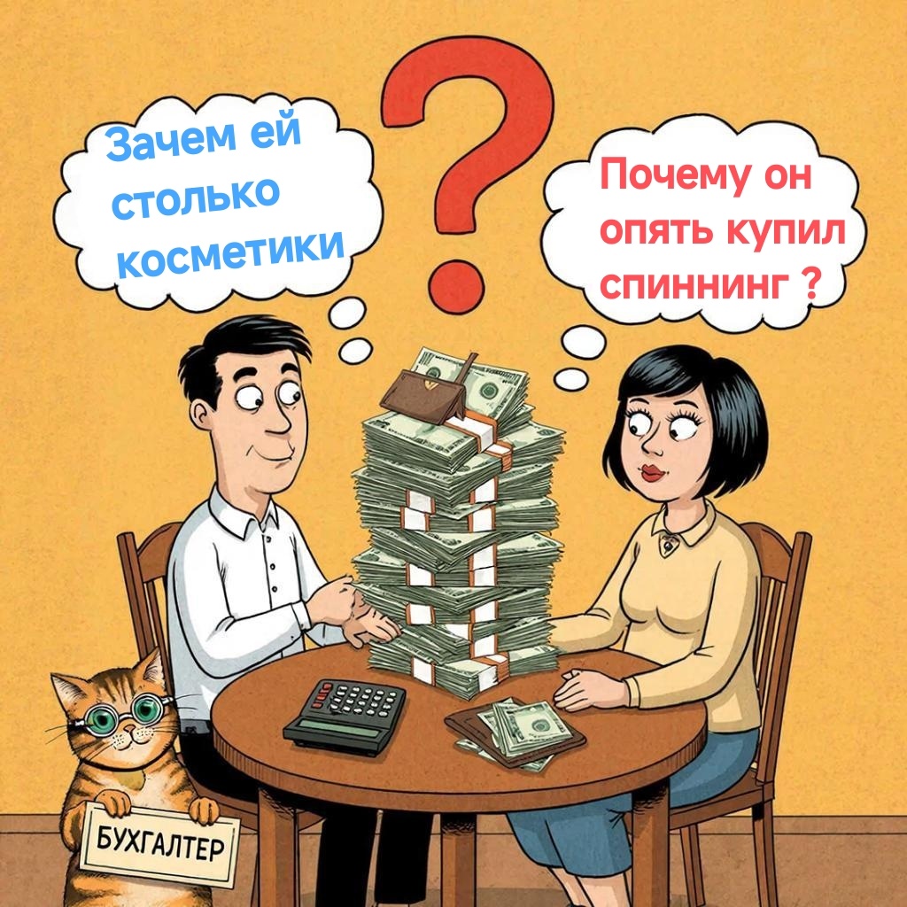 Минусы: Постоянные споры «почему ты опять купил эту ерунду», потеря личной свободы и ощущение, что ты отчитываешься за каждую копейку.
