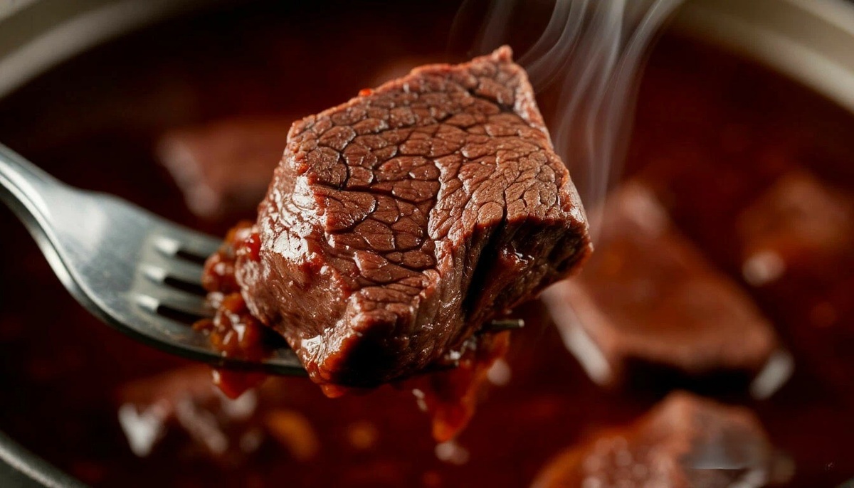 - При тушении: Добавьте немного вина или уксуса — кислота ускоряет распад соединительной ткани. Тушите на очень медленном огне: для говядины принцип «тише едешь — дальше будешь» работает идеально.