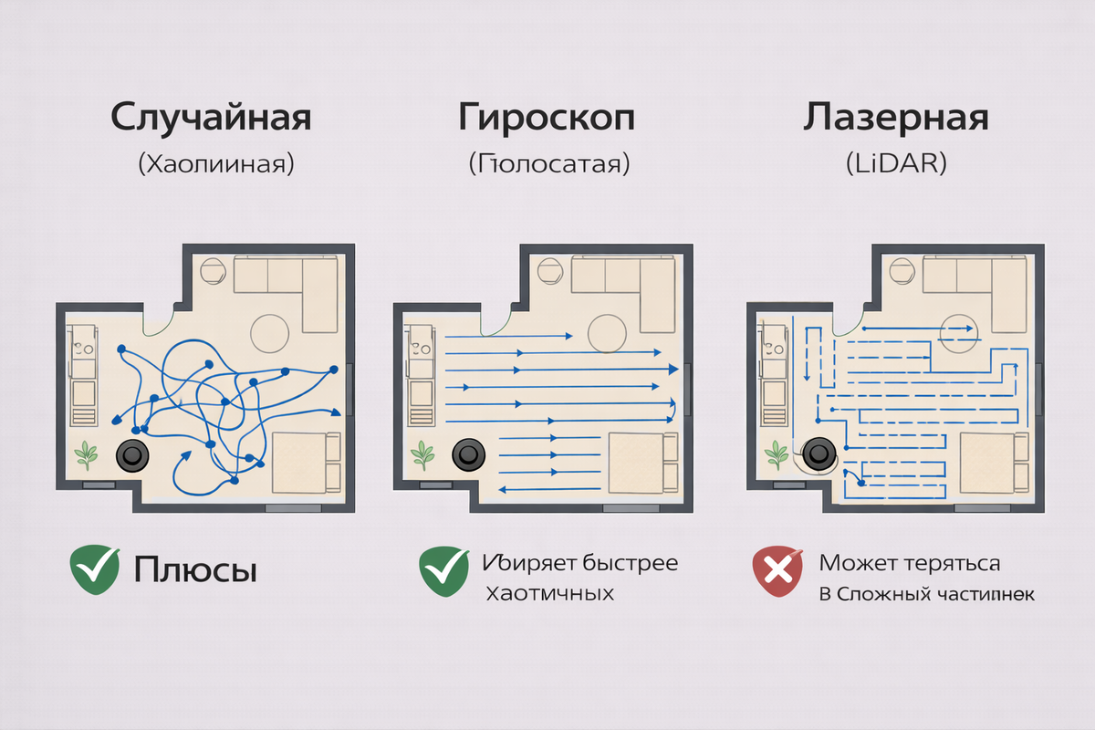Мой опыт: Первый робот за 7000₽ собирал пыль только вдоль плинтусов и постоянно терялся. Второй (с лазерной навигацией) строит карту, убирает по комнатам и сам возвращается на базу. Разница — как небо и земля. Не экономьте на навигации!
