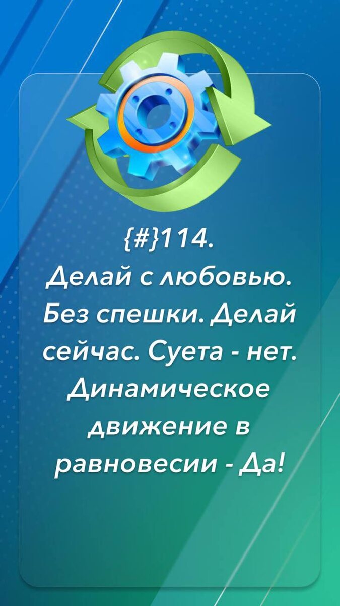 Без спешки. Делай сейчас. Суета - нет. Динамическое движение в равновесии - Да!
