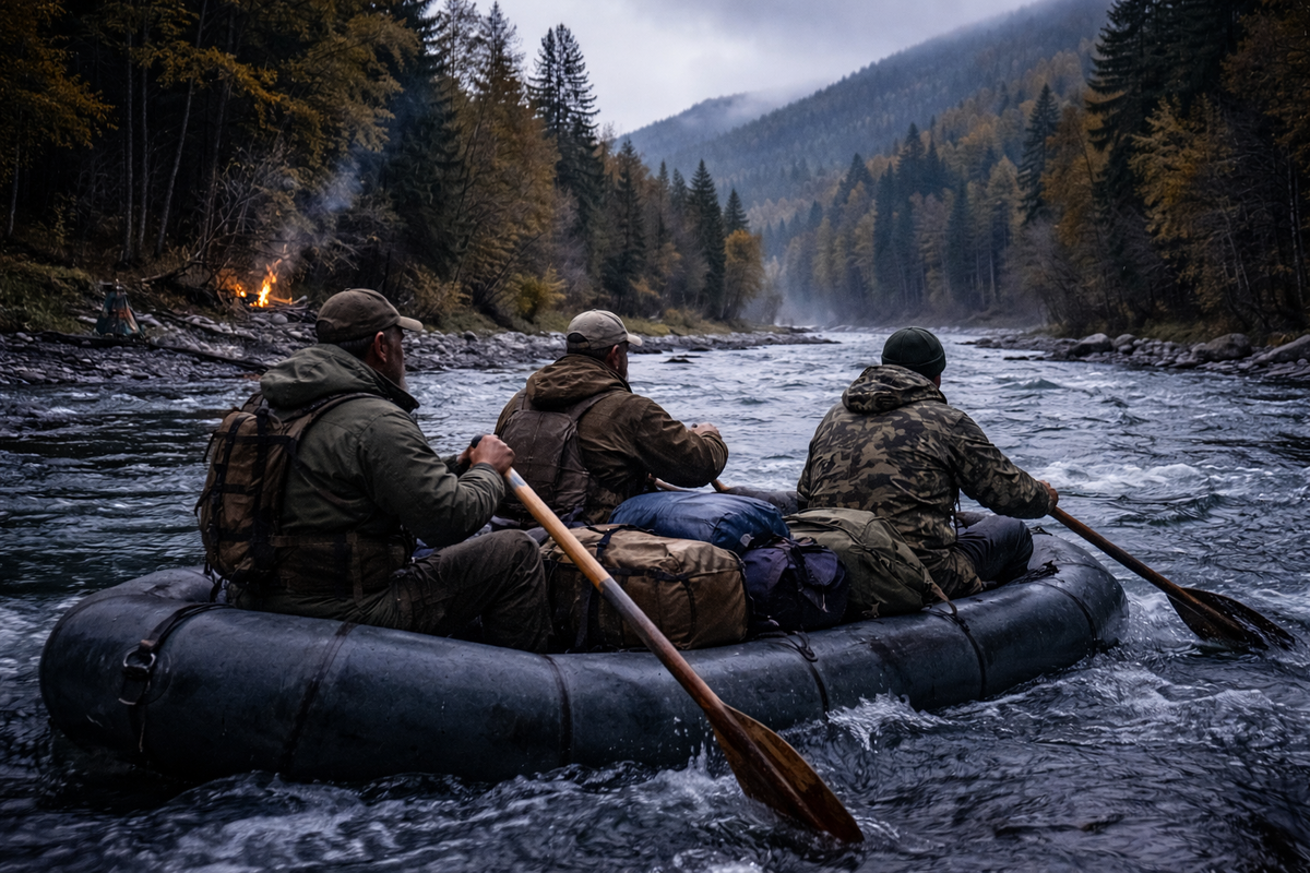 В тайге есть реки, о которых знают только охотники и редкие рыбаки. Они не отмечены на туристических картах, по ним не ходят моторки и не ставят базы отдыха. Такие реки текут тихо среди сопок, буреломов и кедровников, и иногда кажется, что человек там появляется раз в несколько лет. Именно про такую реку однажды услышали трое друзей — Сергей, Лёха и Павел. Им рассказал о ней старый охотник в маленьком посёлке на большой реке. Он сказал, что где-то в горах есть старая таёжная река, куда раньше иногда сплавлялись промысловики, а теперь туда почти никто не ходит. Говорил он спокойно, будто между делом, но добавил одну деталь — в глубоких ямах там держится ленок и хариус такой крупный, что на обычных реках его уже почти не встретишь. Этого было достаточно, чтобы у друзей загорелась мысль пройти по этой реке. Осень в тайге уже вступала в силу. Лиственницы становились золотыми, ночами приходили первые морозы, а утром над водой стоял густой холодный туман. Именно в это время они и решили отп