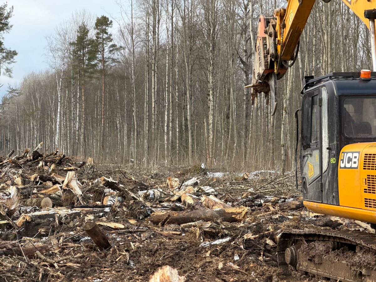 Приступили к выполнению работ по выкорчевке пней и мульчированию на объекте ВСМ ( высоко скоростная магистраль Москва-Санкт Петербург Ж/Д