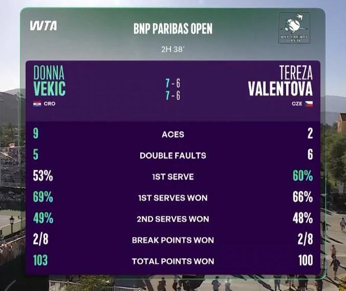 ⚡ WTA 1000 Indian Wells R1: [WC] D. Vekic def. T. Valentova 7-6⁴, 7-6⁴