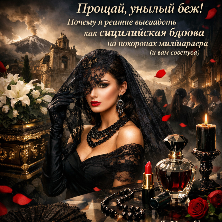 Даже если мой маршрут на сегодня ограничивается треугольником «диван — холодильник — ванная». Я решила выглядеть так, словно я собираюсь на афтепати похорон своего нелюбимого, но сказочно богатого сицилийского мужа. Знаете, этот образ: черные очки, вуаль, а под ней — торжествующий взгляд и макияж, который стоит дороже, чем почки всех присутствующих.