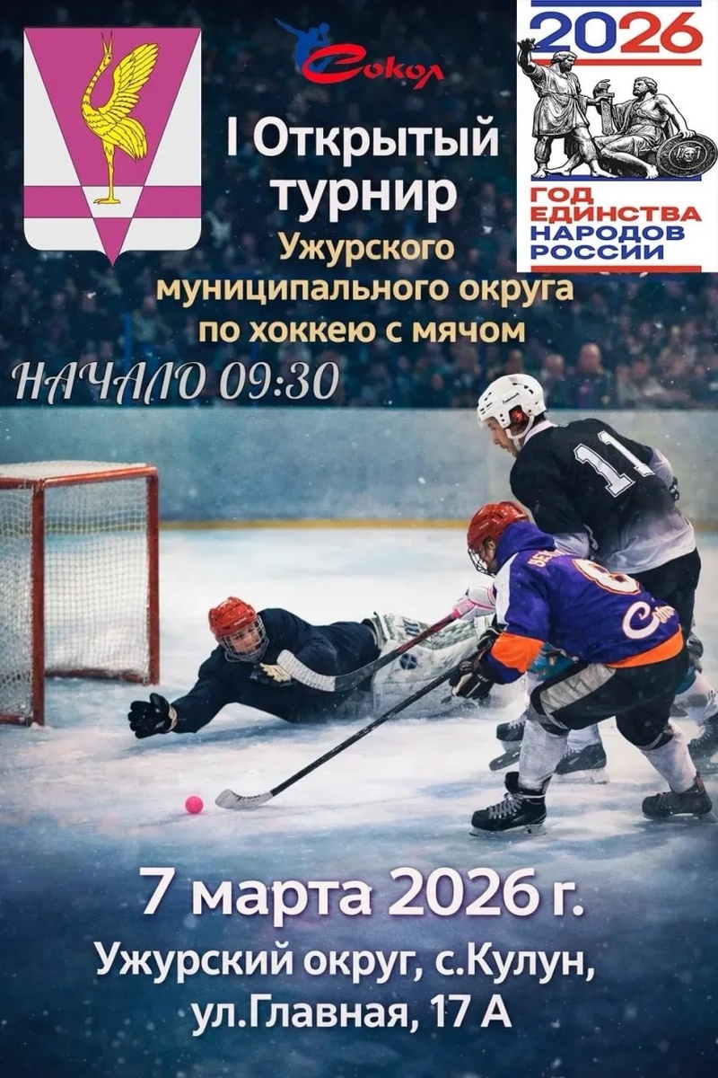 📍7 марта в спорткомплексе "Сокол" состоится первый открытый турнир Ужурского округа по хоккею с мячом