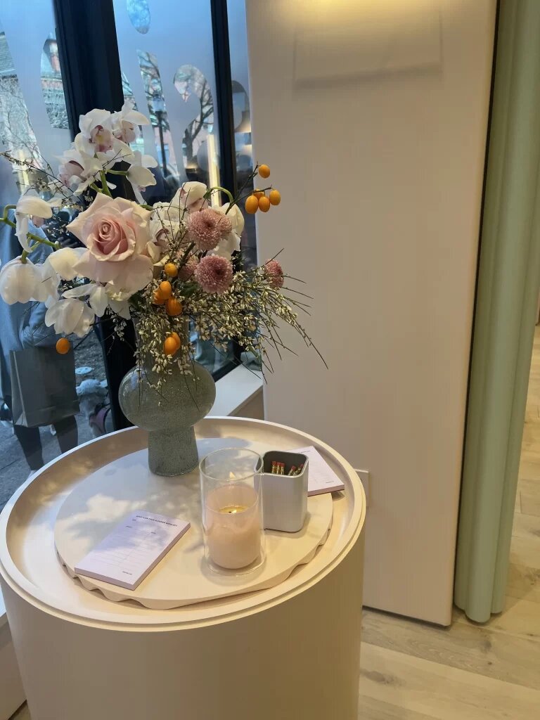 Мне невероятно повезло (или просто мои связи работают лучше, чем мои нейроны в понедельник утром) перекинуться парой слов с CEO компании, Kyle Leahy. Оказалось, она родственница моей знакомой, так что светская беседа удалась. Кайл — само очарование. Мы обсудили, что у каждого магазина Glossier есть своя тема. Например, в Вашингтоне — авиационная тематика. А бостонский магазин — это оммаж Музею Изабеллы Стюарт Гарднер. Много зелени, арта и эстетики.