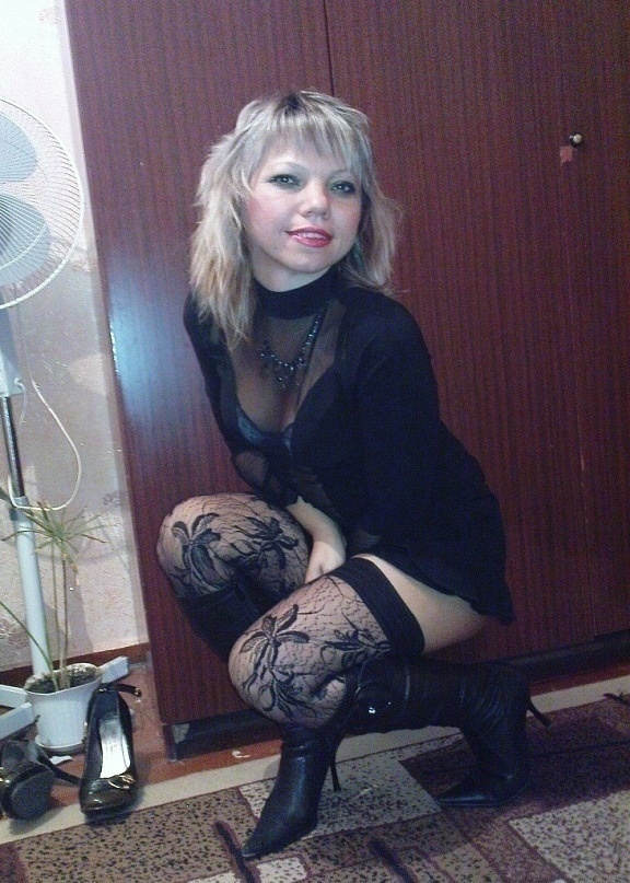 Она одета в полупрозрачную чёрную блузу, которая мягко облегает фигуру, подчёркивая её линии, но оставляя место для воображения. Чёрные ажурные чулки с цветочным узором, словно паутинка, окутывают ноги, придавая образу лёгкую готическую эстетику. Высокие чёрные сапоги на каблуке завершают ансамбль, делая её позу одновременно уязвимой и уверенной.