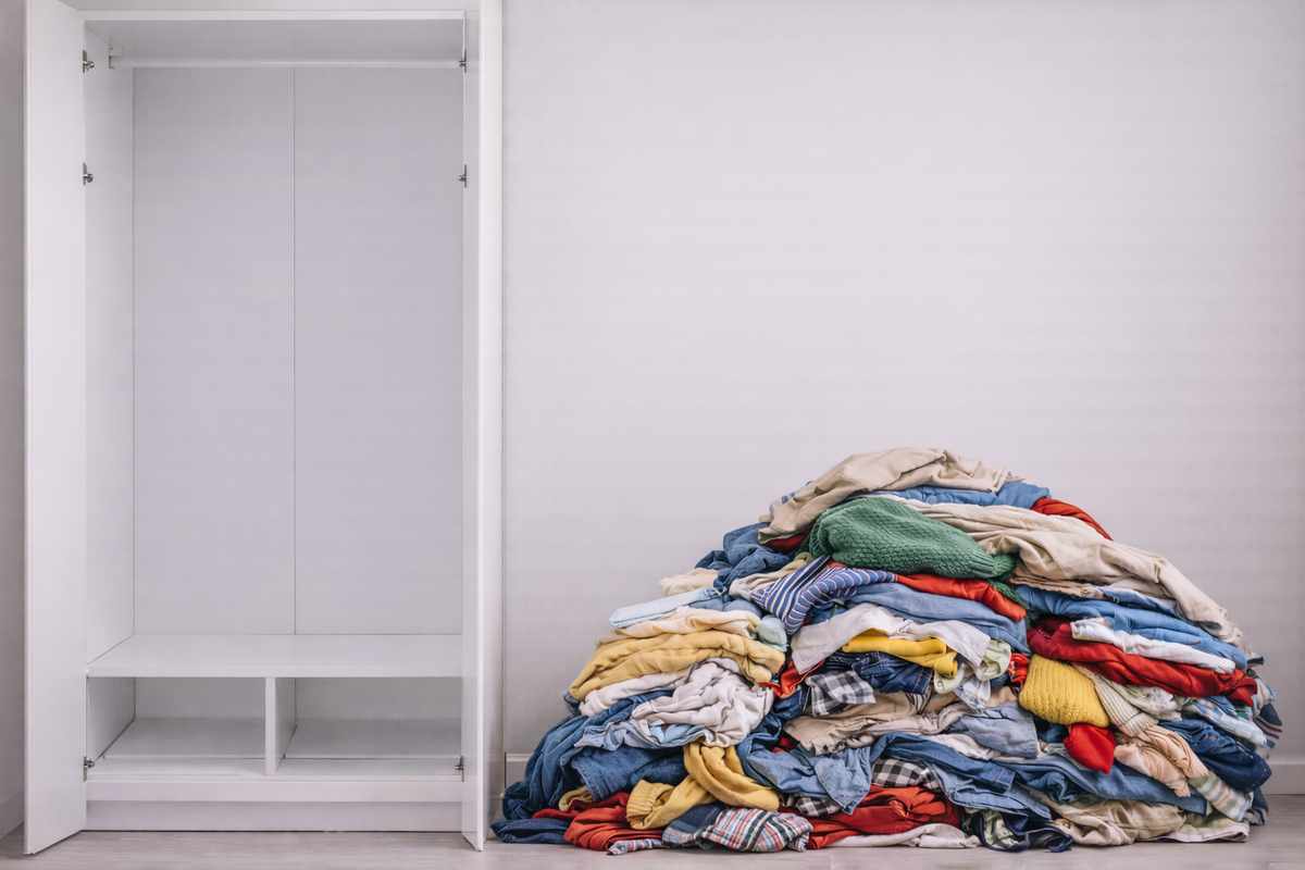 Выньте ВСЕ вещи. Даже те, что лежат «аккуратно». Шкаф должен быть полностью пустым. Только так вы увидите реальный объём вещей и протрёте пыль в углах.